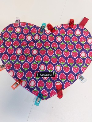 - 2 x pièces de coton avec par exemple un motif „fraises“ de 30×30 cm chacune