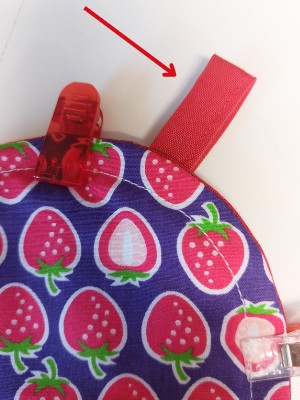 Vous pouvez coudre une étiquette (par ex. “handmade”) au milieu du tiers inférieur de chacune des pièces avec les fraises.